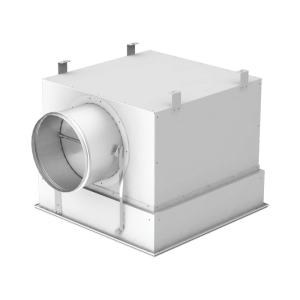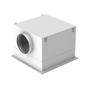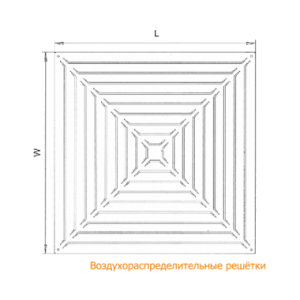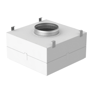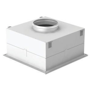 Воздухораспределитель с боковым расположением круглого патрубка с уменьшенным размером по высоте для подвесного потолка ППМ.